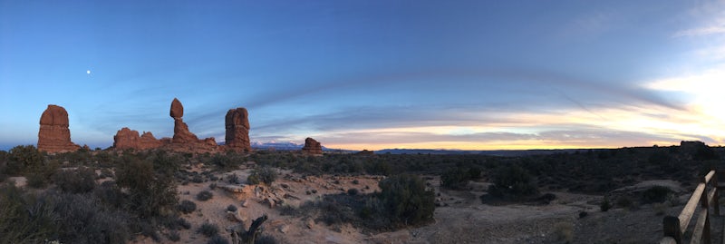 Sunset and moonrise overlooking Balancing Rock.