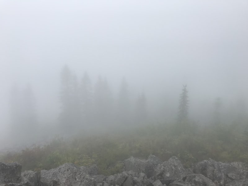 Early morning hike. Way too foggy to be able to see the mountains 😩